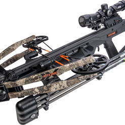 This ready-to-hunt crossbow package includes a includes a Speed Comp Scope, 3 Bear X TrueX arrows, 4-arrow quiver, sling, standard cocking aid, and rail lube / string wax